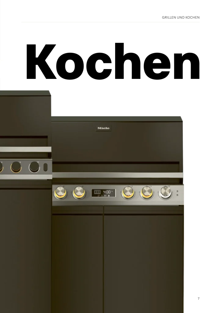 Die Miele Outdoor-Küche überzeugt im Bereich Grillen und Kochen mit moderner Technik, durchdachter Ausstattung und hoher Leistungsfähigkeit. Hochwertige Gasgrills sorgen für gleichmäßige Hitzeverteilung, präzise Temperaturkontrolle und zuverlässige Ergebnisse – ideal für anspruchsvolles Grillen im privaten wie im professionellen Umfeld.