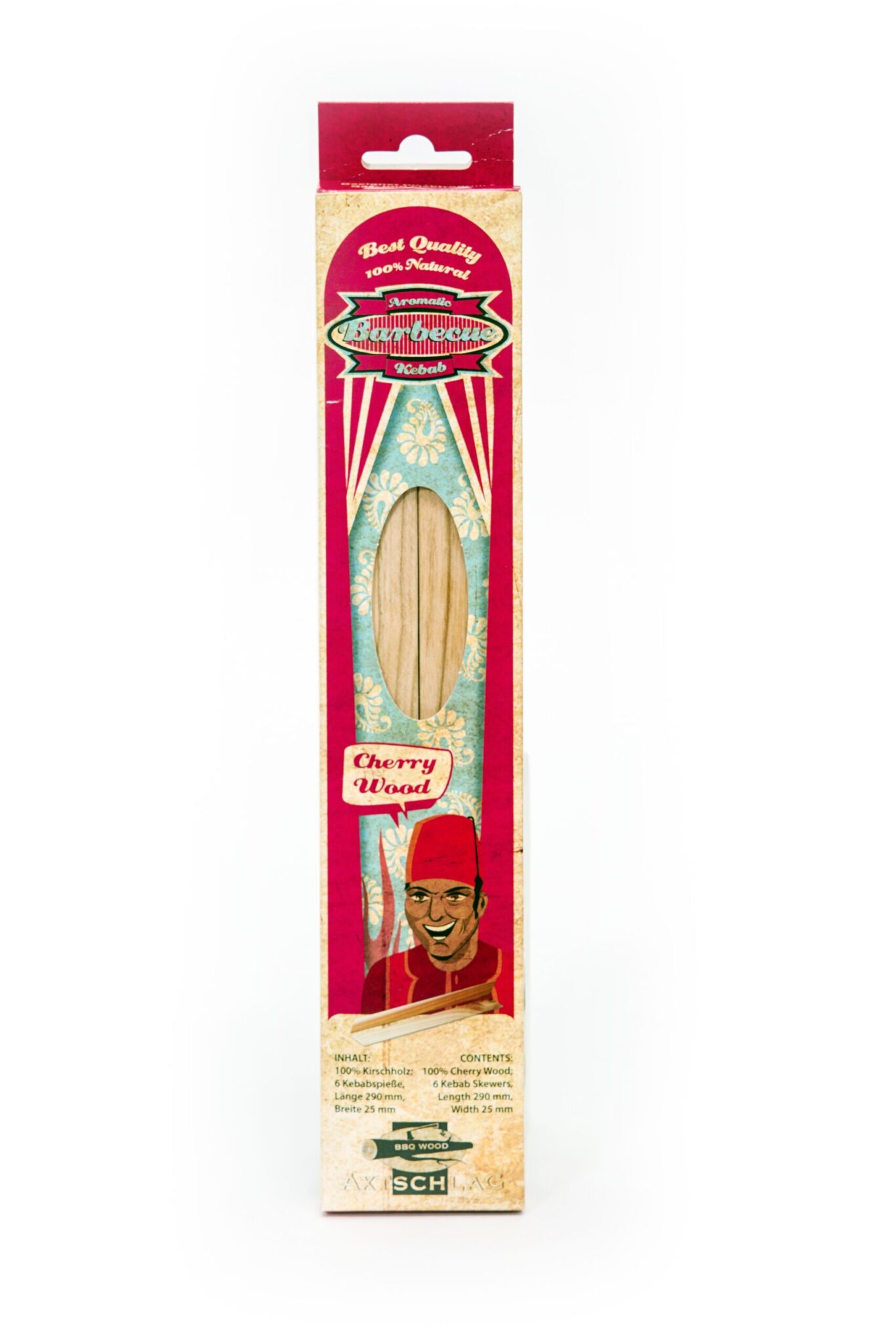 Die Kebab-Spieße aus 100 % Kirschholz aromatisieren dein Gargut mit einem fein milden und fruchtigen Holzaroma und bringen dir das fernöstliche Grillerlebnis nach traditioneller Art direkt nach Hause. Besonders gut geeignet für die Zubereitung von gehacktem Fleisch. Nach dem 20-minütigen Einweichen der Spieße in Wasser werden diese mit dem Grillgut deiner Wahl bestückt und können auf den Grill. Dazu einfach die Spieße z. B. mit der gewürzten Hackfleischmasse umwickeln, angrillen und bei indirekter Hitze fertig garen. Die Spieße können mehrfach benutzt werden. Durch die ideale Größe eigenen sich die Kebab-Spieße für verschiedenes Grillgut, von Gemüse, über Fleischstücken bis zu Hack. Die Spieße sind 29 cm lang und haben mit einer Breite von 2,5 cm eine extra große und flache Auflagefläche. Für alle offenen sowie geschlossenen Grill- und Räuchergeräte geeignet. In der Verpackung sind 6 wiederverwendbare Spieße.