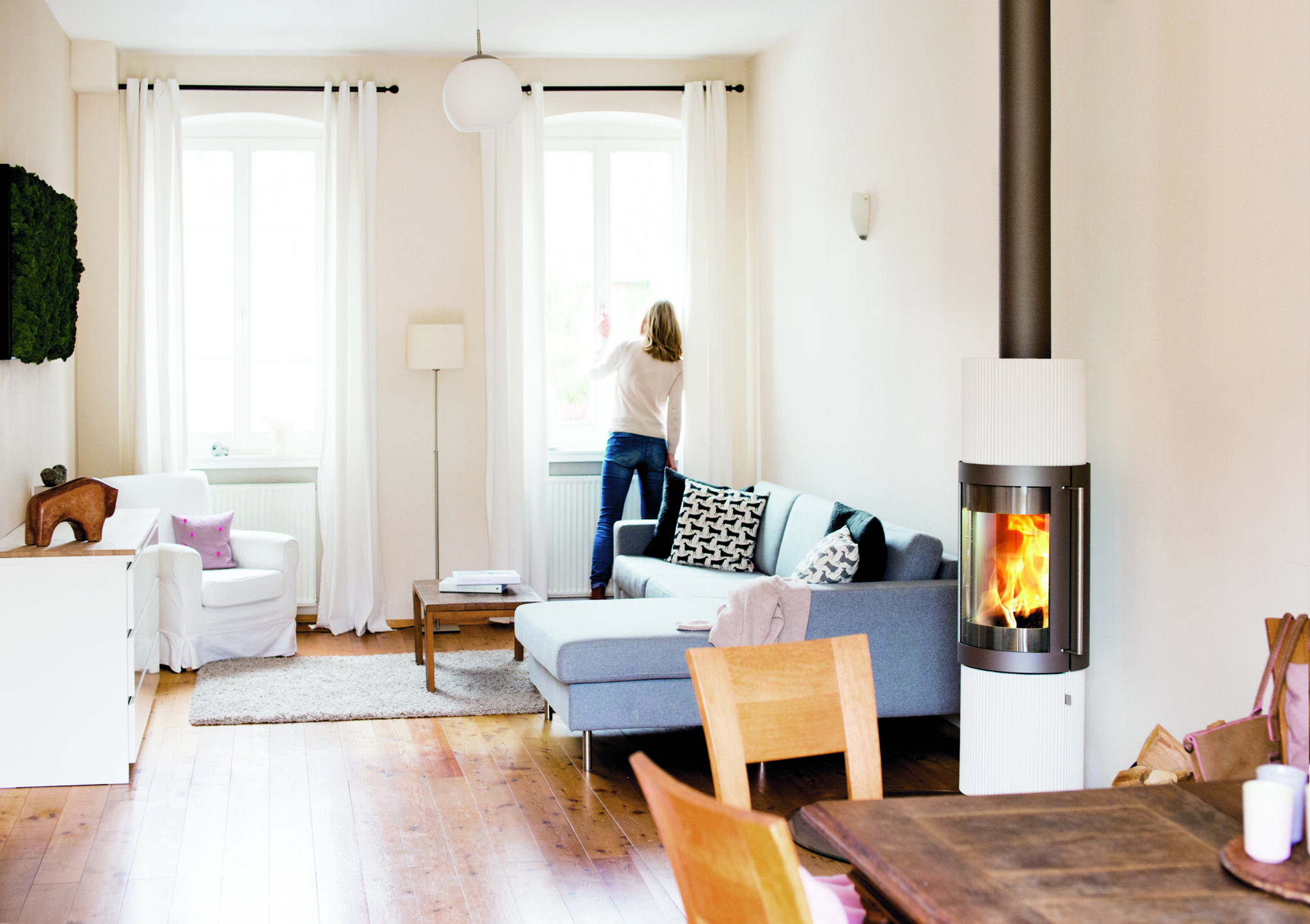 Mit einem Durchmesser von 39 Zentimetern ist ELVAS ein wunderschöner, schlanker Kaminofen. Er zaubert ein großartiges Feuerbild und das ohne zu viel Wärme zu erzeugen. Perfekt für Häuser und Wohnungen mit niedrigem Wärmebedarf. Sie können ELVAS in der Keramikfarbe bestellen, die in Ihrem Zuhause den richtigen Akzent setzt. Dazu wählen Sie eine glatte oder edle Fächertextur-Keramik. Und dann dürfen Sie sich schon auf Ihren neuen Kaminofen freuen, der übrigens auch noch drehbar ist.