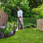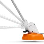 Für hohen Bedienkomfort sorgen der verstellbare Teleskopschaft, der einstellbare Bügelgriff sowie die drehbare Mäheinheit, mit der sich auch Rasenkanten präzise schneiden lassen. Zusätzlich schützt der klappbare Abstandsbügel Pflanzen, Bäume oder Gartenobjekte beim Arbeiten in deren Nähe.